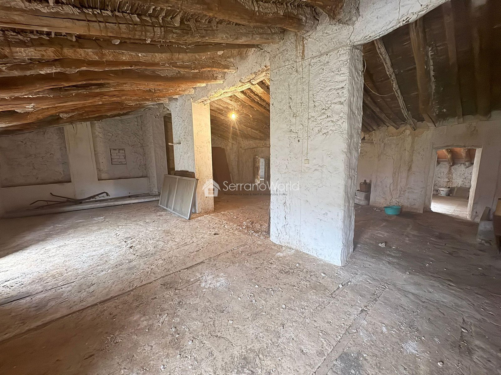On the first floor, there are two small bedrooms and a large open-plan space offering multiple possibilities for renovation and layout (additional bedrooms, living area, studio, etc.).
